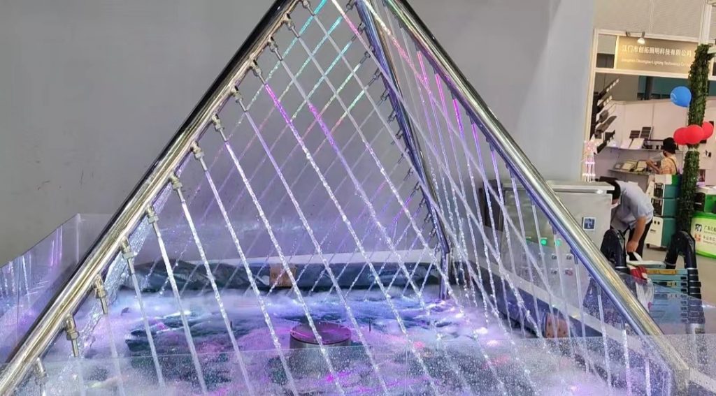 Our new products are the IP68 waterproof laser light, 360°rotated laser light, gobo light, interactive projector and water fountain.