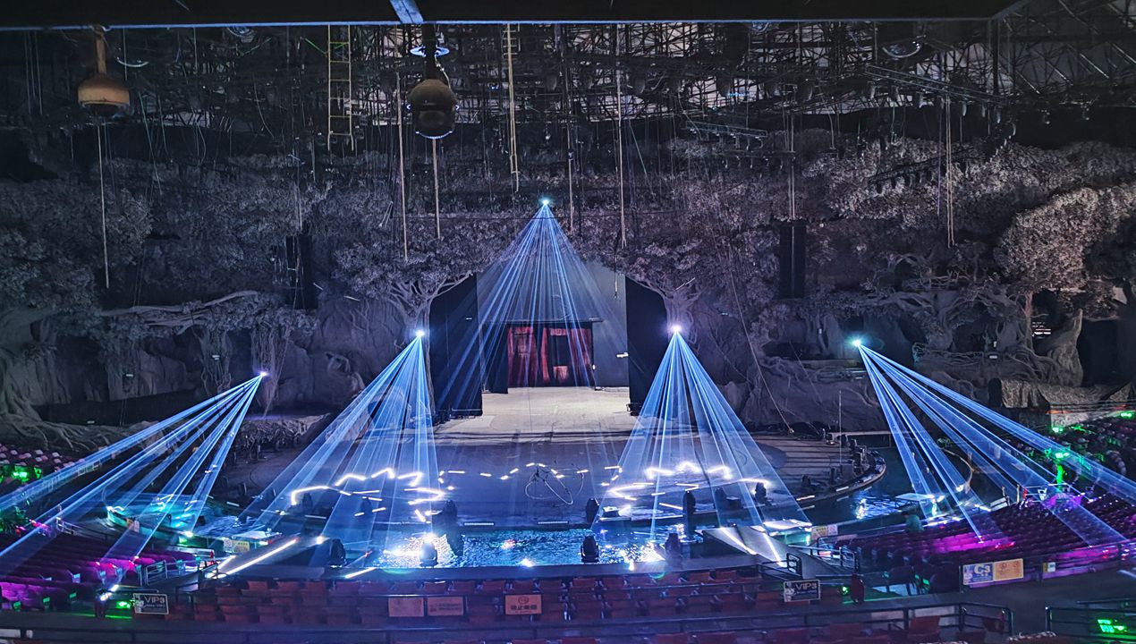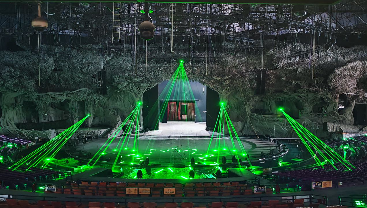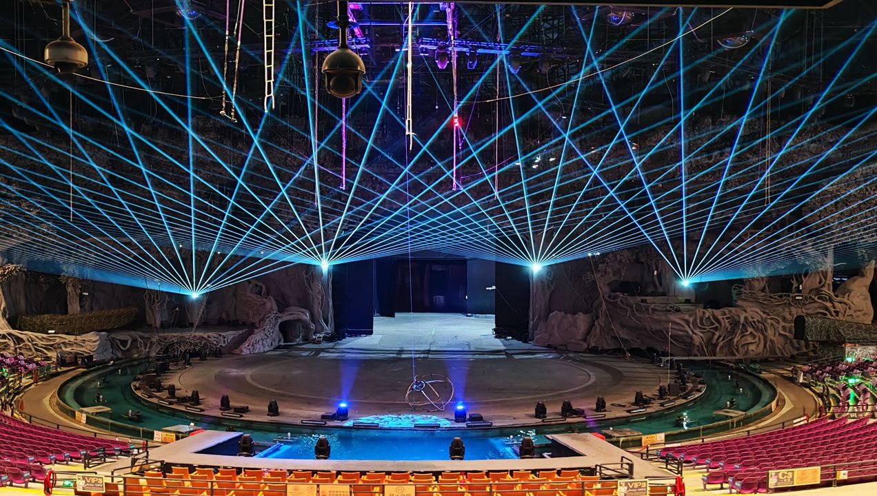 The Chimelong International Circus, is the largest one of the world wonderful circus show ,which can contain more than 8000 audiences,its covered area is up to 9500 square meters,meanwhile,its stage is 700 square wide,and whose blocking,acoustics and lighting effects are also reach a international leading level. We provide the RGB 25Watts Laser light, this models laser light which can project to the floor for the adverting graphic and make the great beam light effect.The international circus rendered many thrilling shows one after another, allowing the audience to enjoy stunning visual feasts.