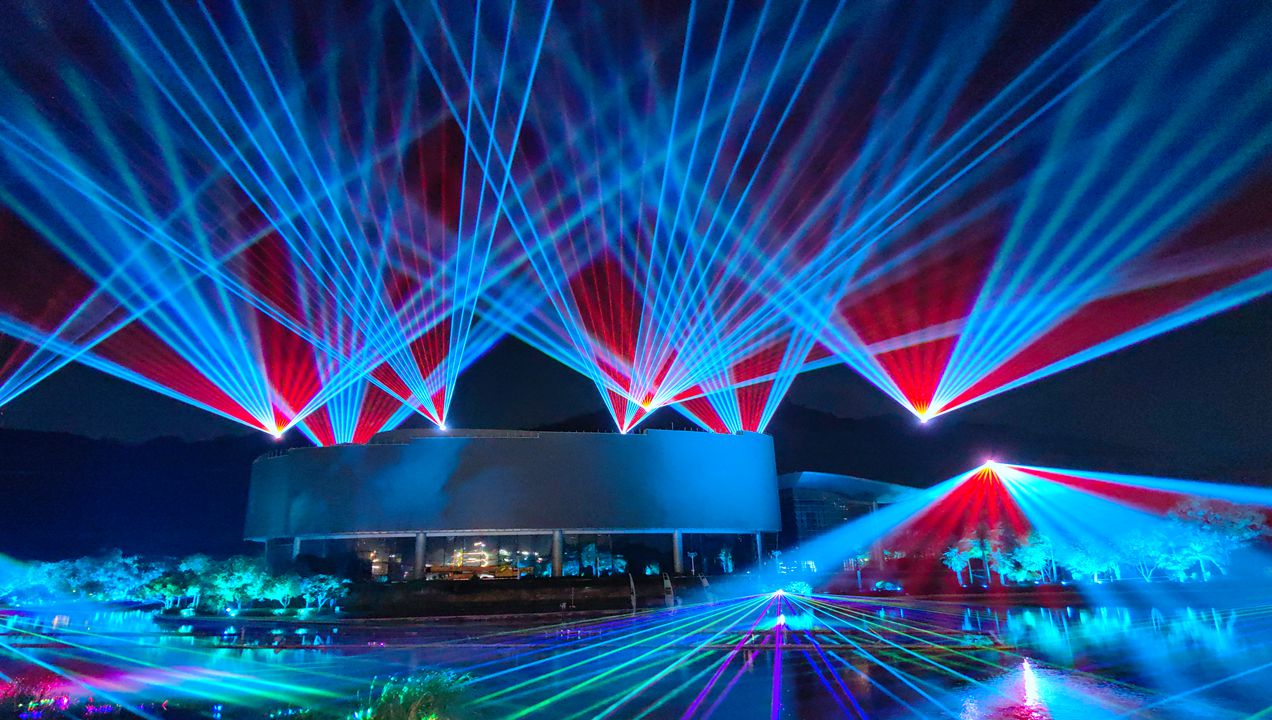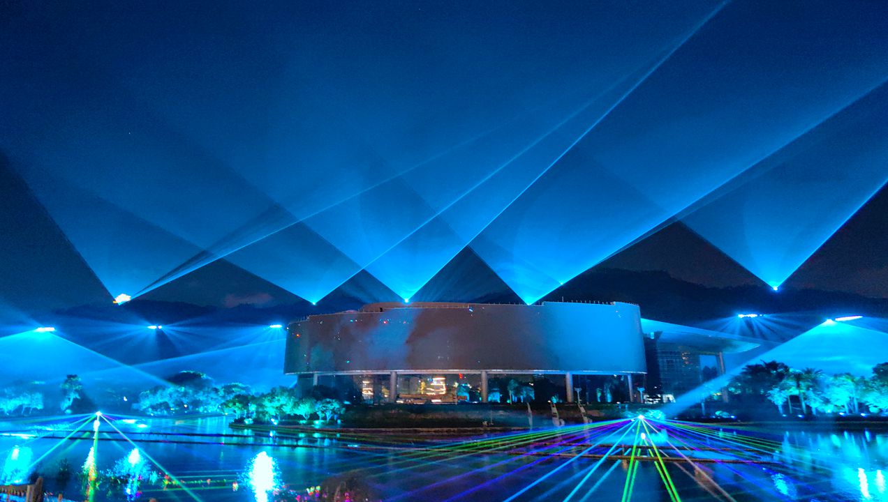 Canton Tower municipal project, the one of the most influential projects in the China, As the landmark building, there use various high power laser light for the landscape lighting. There use near 20 set RGB full color laser, the most powerful laser is 120 Watts deliver stunning visuals and one beam offer an incredible viewing distance of up to 20km. High power and long -range beam laser projection system bring the dazzling beam light effects.